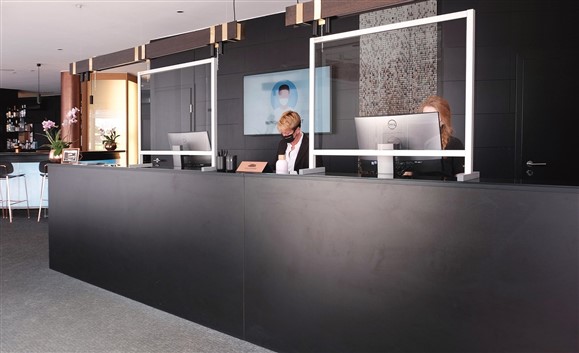 Με ένα προστατευτικό πλαίσιο (υγιεινής) της Minitec, σας προσφέρουμε μία γρήγορη και αποτελεσματική λύση κατά μολύνσεων από σταγονίδια. Το προστατευτικό πλαίσιο τοποθετείται απλά μεταξύ των συνομιλητών και έτσι μειώνει σημαντικά την άμεση μετάδοση. Μπορείτε επίσης να τοποθετήσετε το σταθμό υγιεινής στην είσοδο σας. Οι φιλοξενούμενοι σας θα απολυμάνουν στα χέρια τους στην αρχή. Με αυτό το τρόπο προστατεύονται και οι υπάλληλοι σας αλλά και οι επισκέπτες σας.